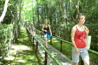 We got the Subway, hoping to be close to the groves, but it turned out that the map had been marked with a shrine that had a bamboo grove entrance, not in fact the cool shady grove we were all hoping for. Still it was a lovely and I enjoyed wandering the traditional garden.