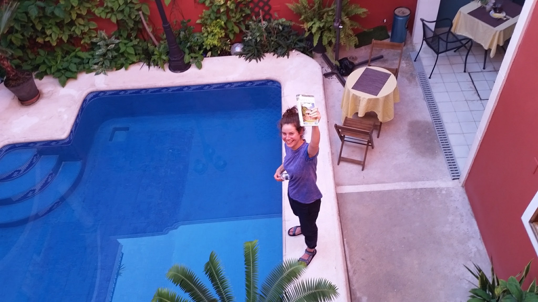 Both of us got sun burnt, and we wandered back through the ruins to get a taxi back to the Casa Sofia. The plunge pool in the courtyard was welcome relief to cool off after the sun (over)exposure. Eddie sweated on the balcony and we decided our onward route, did a bit of booking of hotels and stuff.