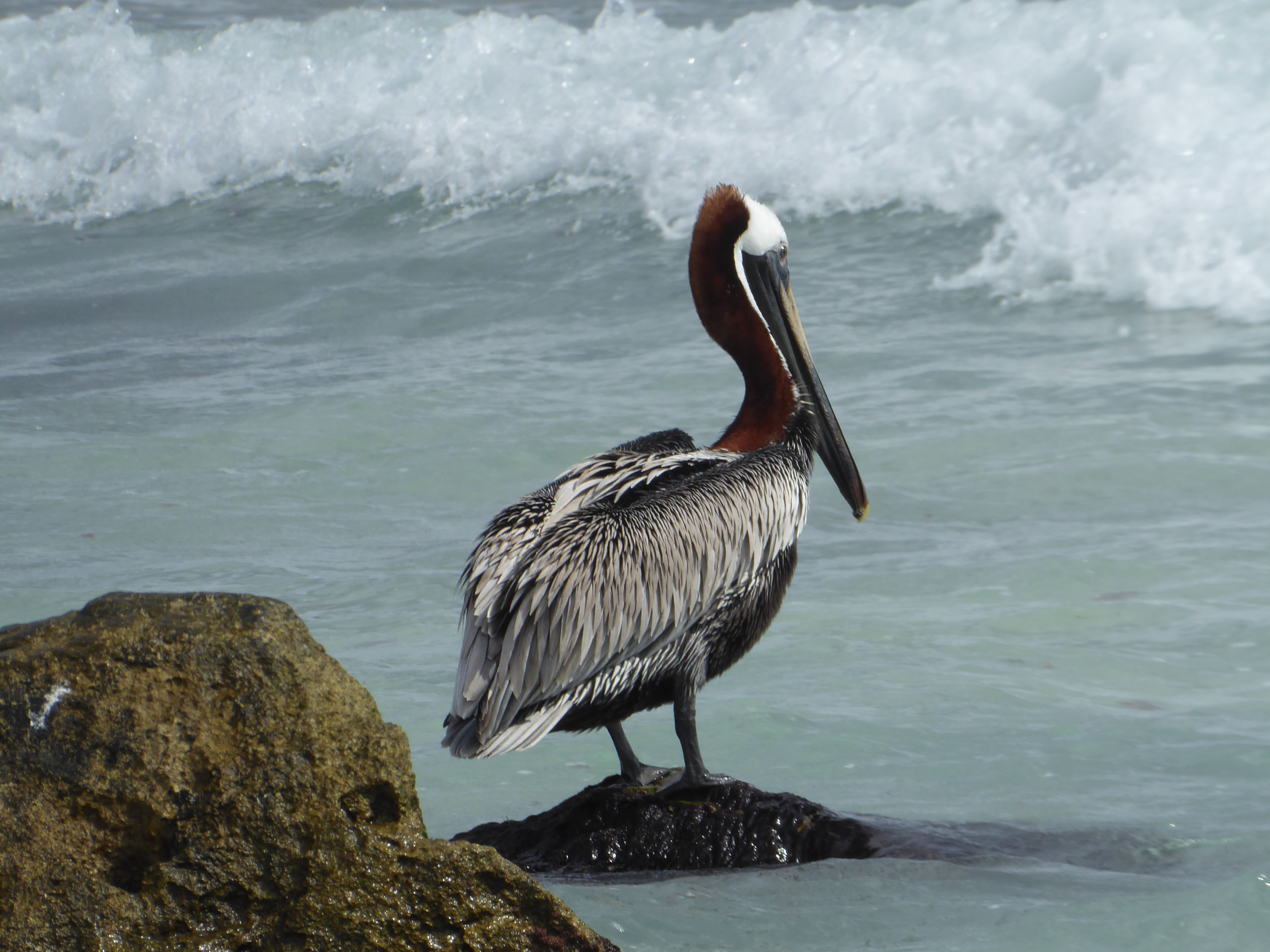 When we finally got there the beach was rather lovely, there was a pelican or two and there were lots of beach huts and a small high street with shops.