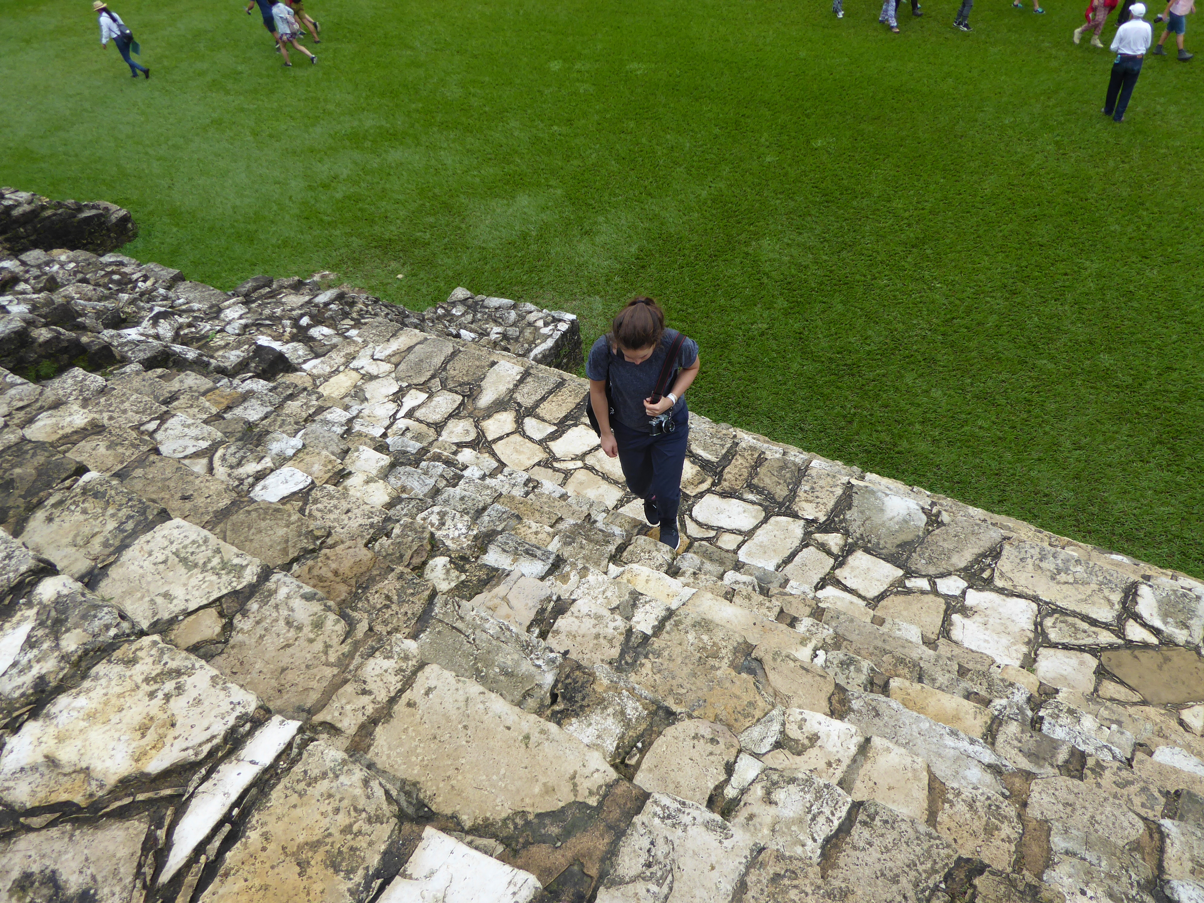 I was shattered and walked around in a daze. The jungle was impressive and because of the rains it was steamy and picturesque. We saw and heard howler monkeys. We walked up some ruins and then it started pouring with rain – jungle style. We sheltered in the temple of the sun god. Very ironic, but at least it was dry. Inside, as we waited for the rain to pass a tour group arrived and we overheard some of the description, the original stucco was still to be seen on the walls, with engravings of Paluk and his son, the emerging ruler.