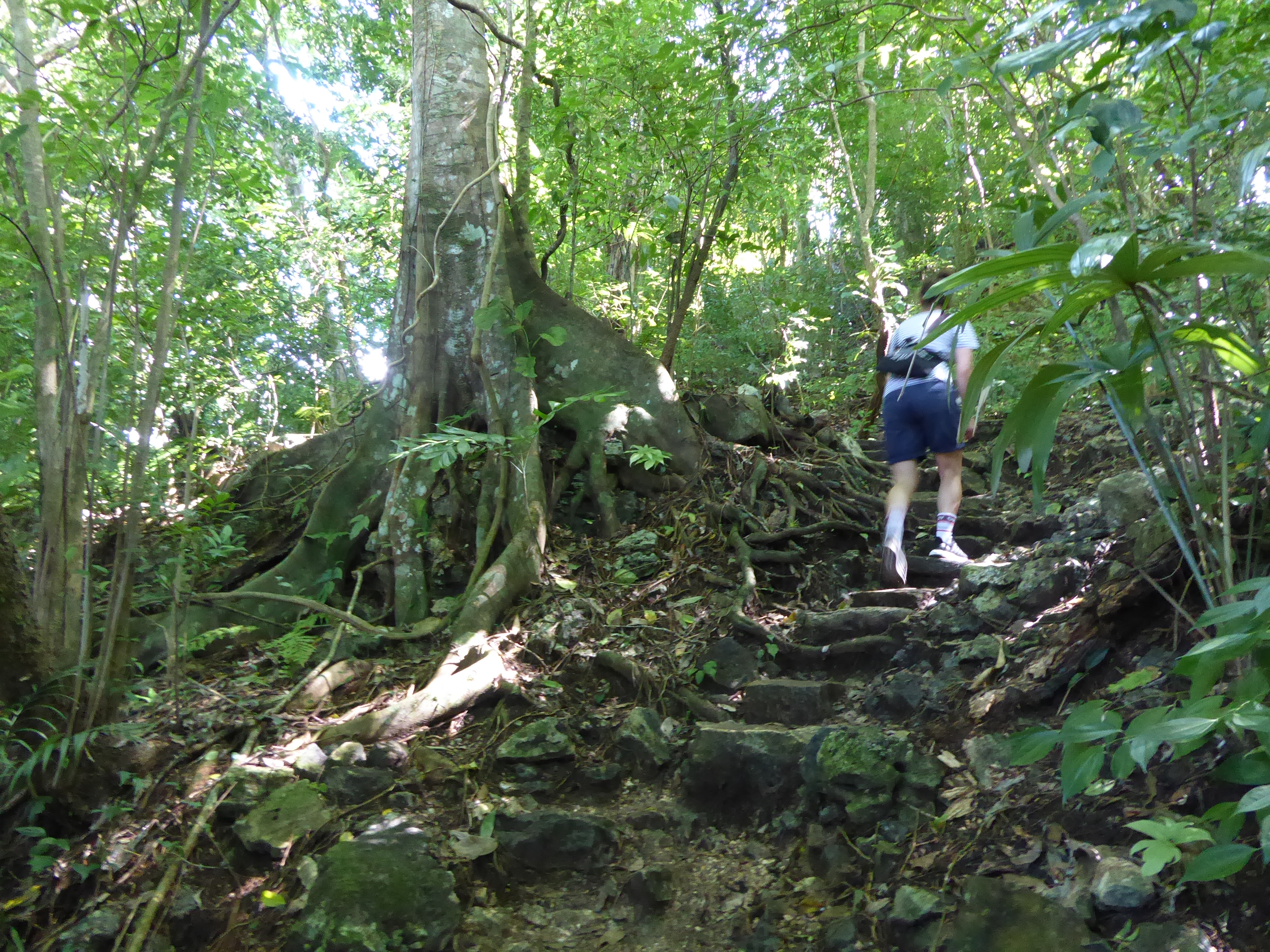 We followed the Rough Guide advice to tour the more remote clusters of ruins first, and then to approach the main temple, or ‘the waffle’ as we’d been calling it from the opposite side to the main path. The guidebook’s route took us through thick jungle, with howler monkeys all around. Biting ants crossed the path regularly, they took any opportunity to take a little nibble.