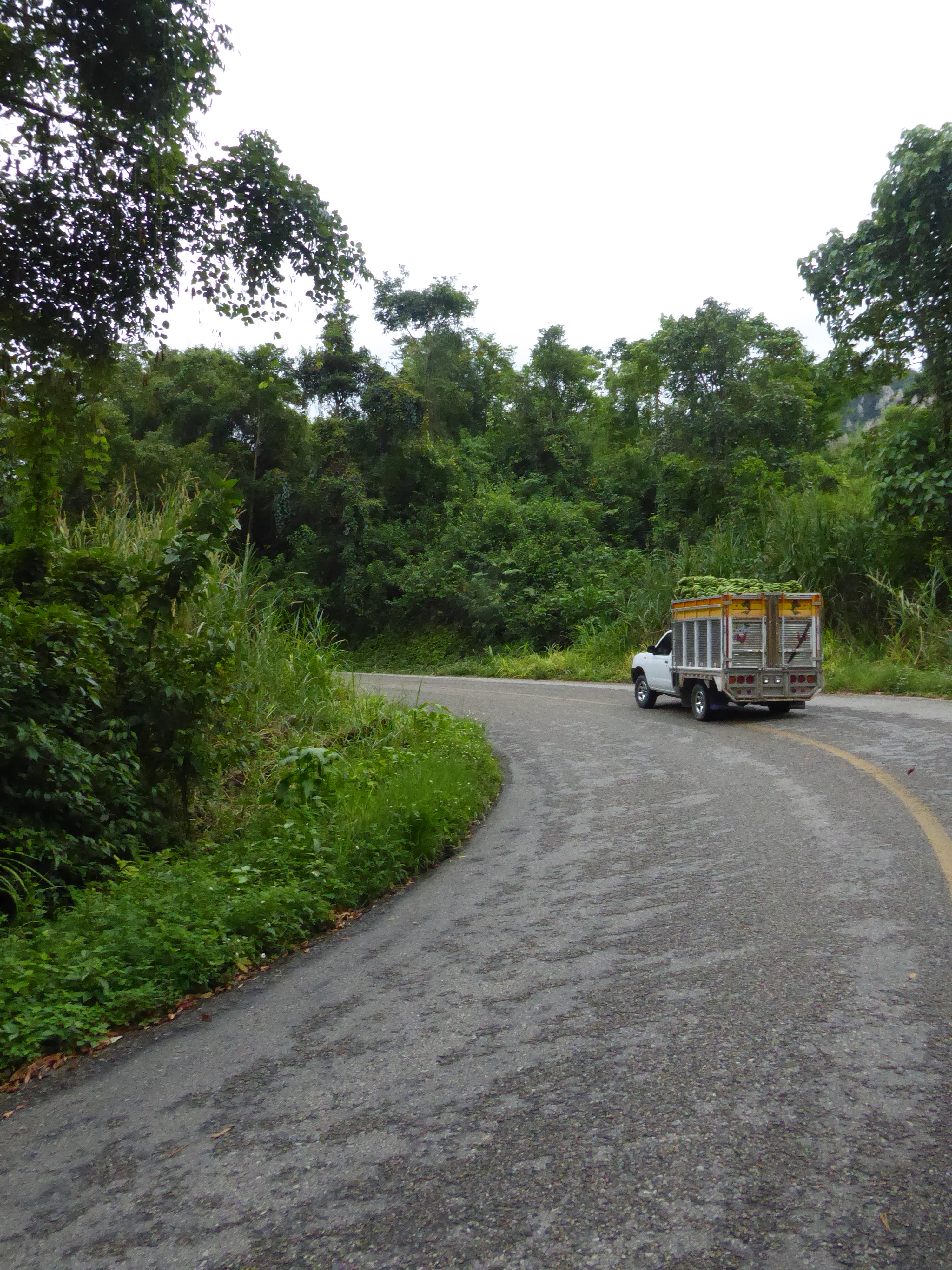 This bus was busy. Sebastian was our driver for this section and he spoke good English. The road began to deteriorate rapidly as we left Benemerito. As the bus emptied out along the road, we moved up to front of the combi to chat to him – he was very interesting and had worked as a chef in America.